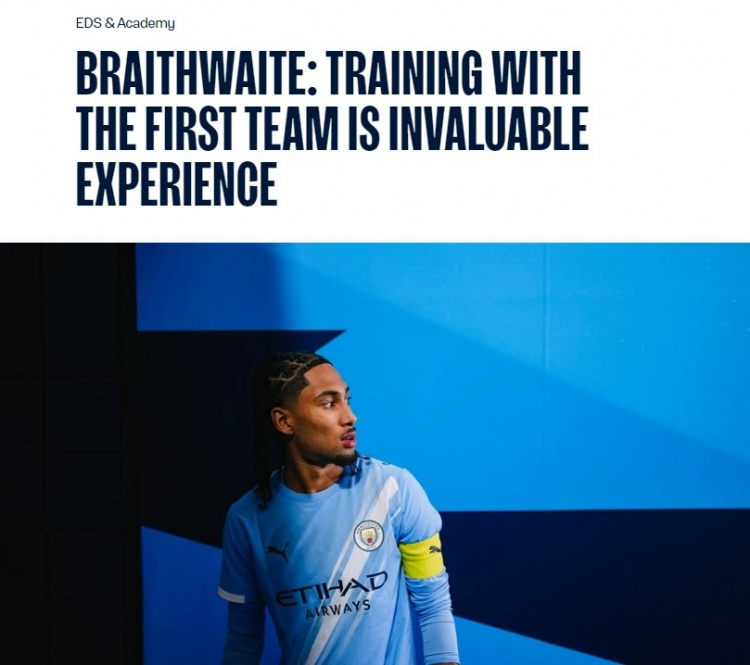 直播吧1月1日讯 近日,曼城U18队长凯登·布雷斯韦特接受了俱乐部官媒的采访牛顾问策略,他谈到了与一线队一同训练的宝贵经历。